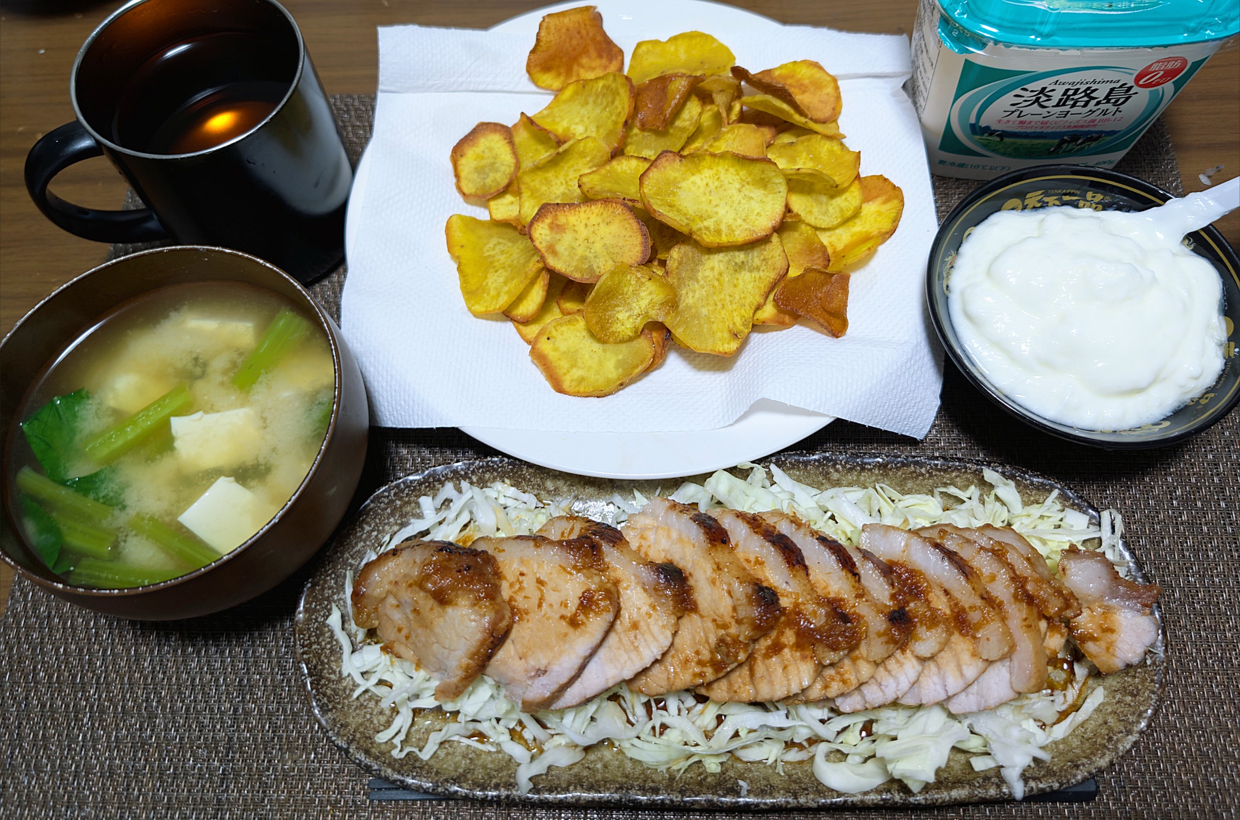 【豚ももブロックのチャーシューとサツマイモチップス】【洋ゲー購入】【息子豚汁】