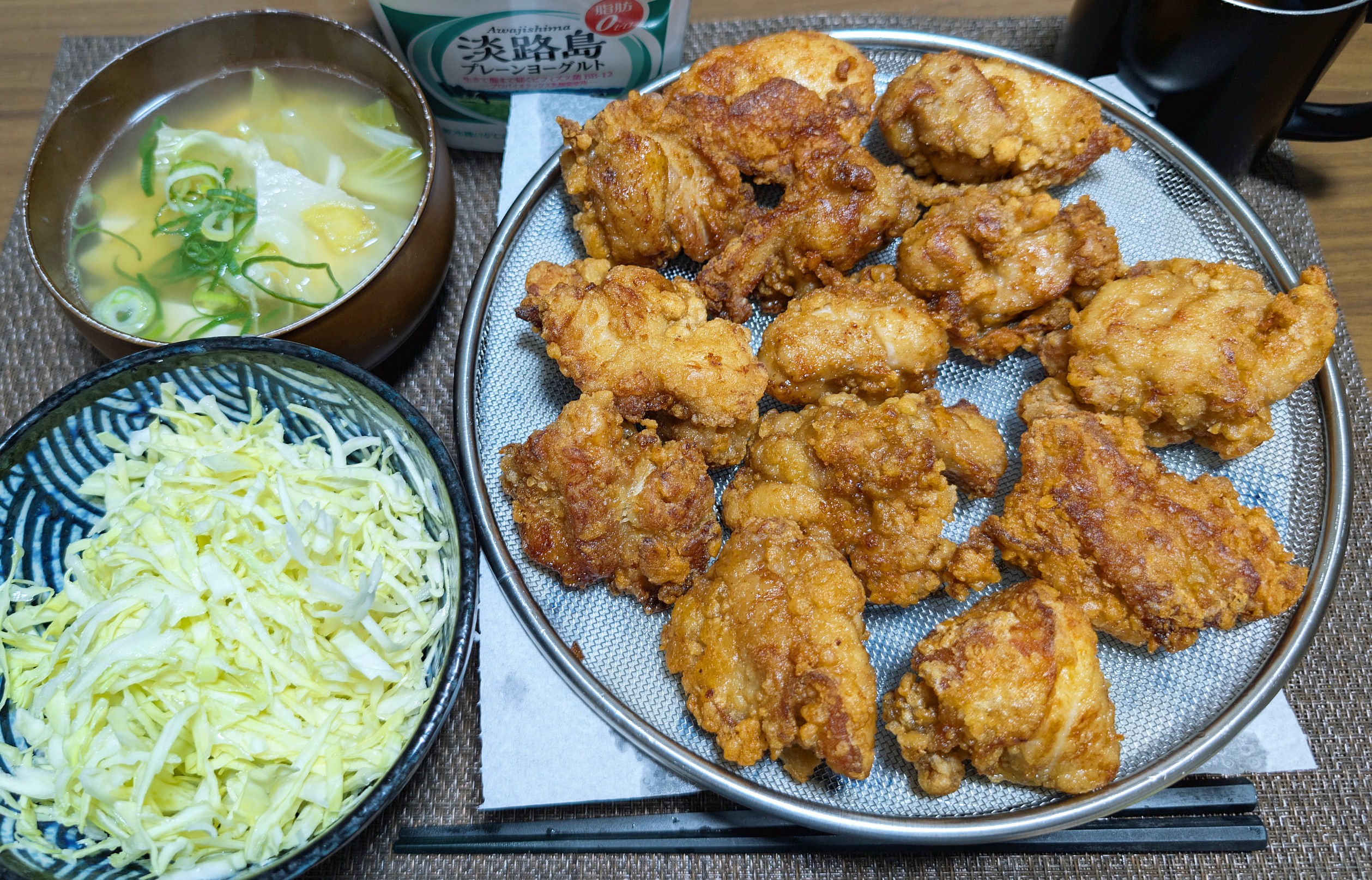 【鶏もも肉の唐揚げ】【目玉焼きウインナー食パン】【月曜日のはじまり】