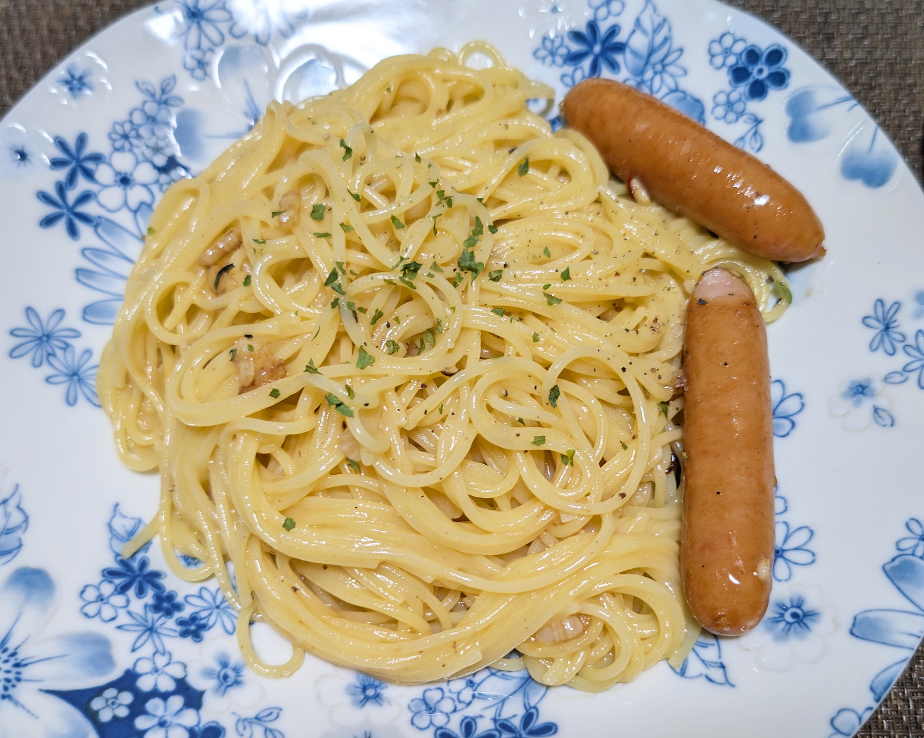 朝は、納豆腐 卵なしにしてみたら味気なかった。。 **** 昼は、ペペロンチーノ... -