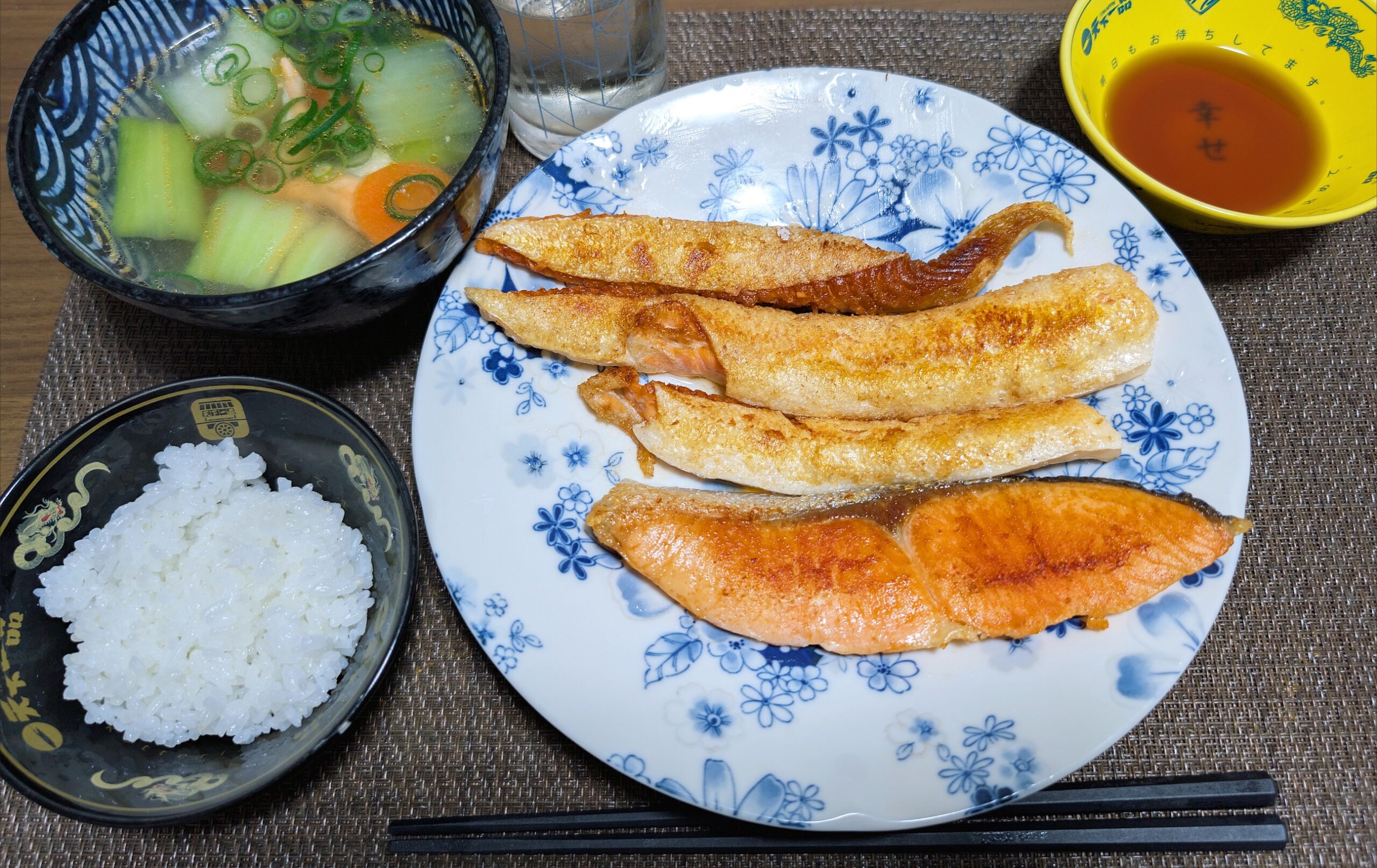 【塩鮭と鮭ハラスのバター焼き】【ケンタ・レッドホット】【飛行機遊び】【ブログ継続かも】
