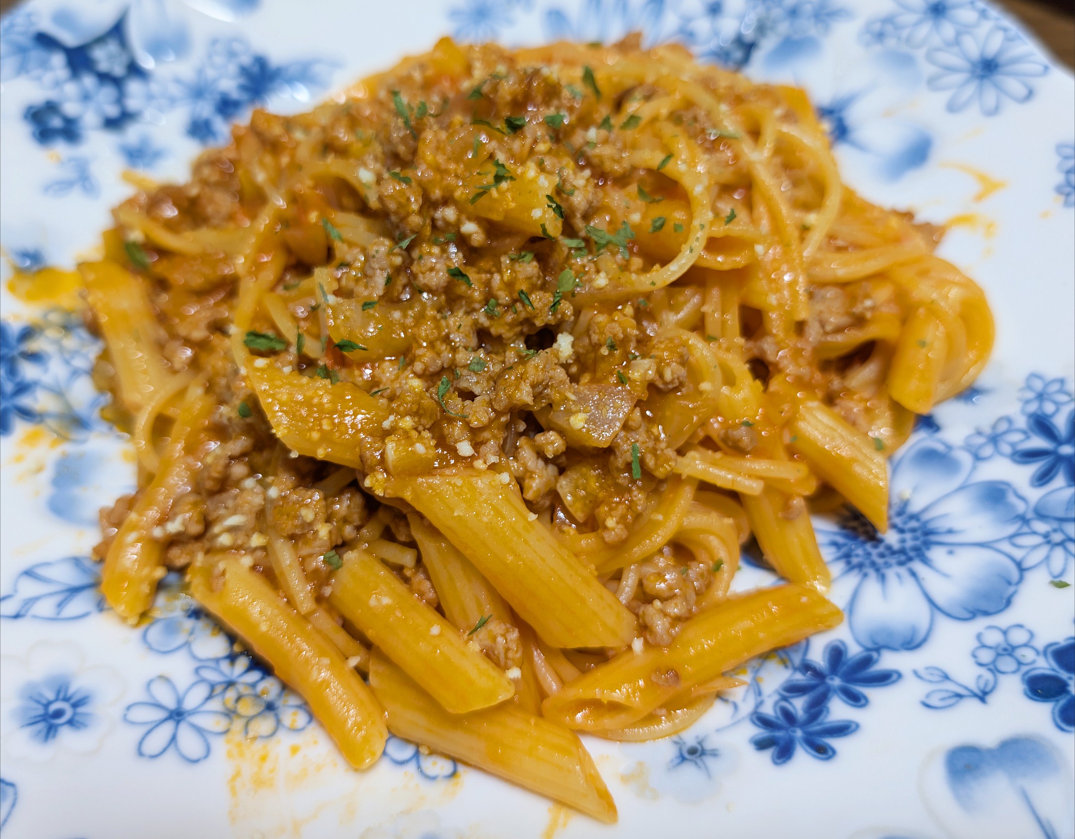 【ミートパスタ】【鶏むね肉のバターチキンカレー】【料理頑張った一日】