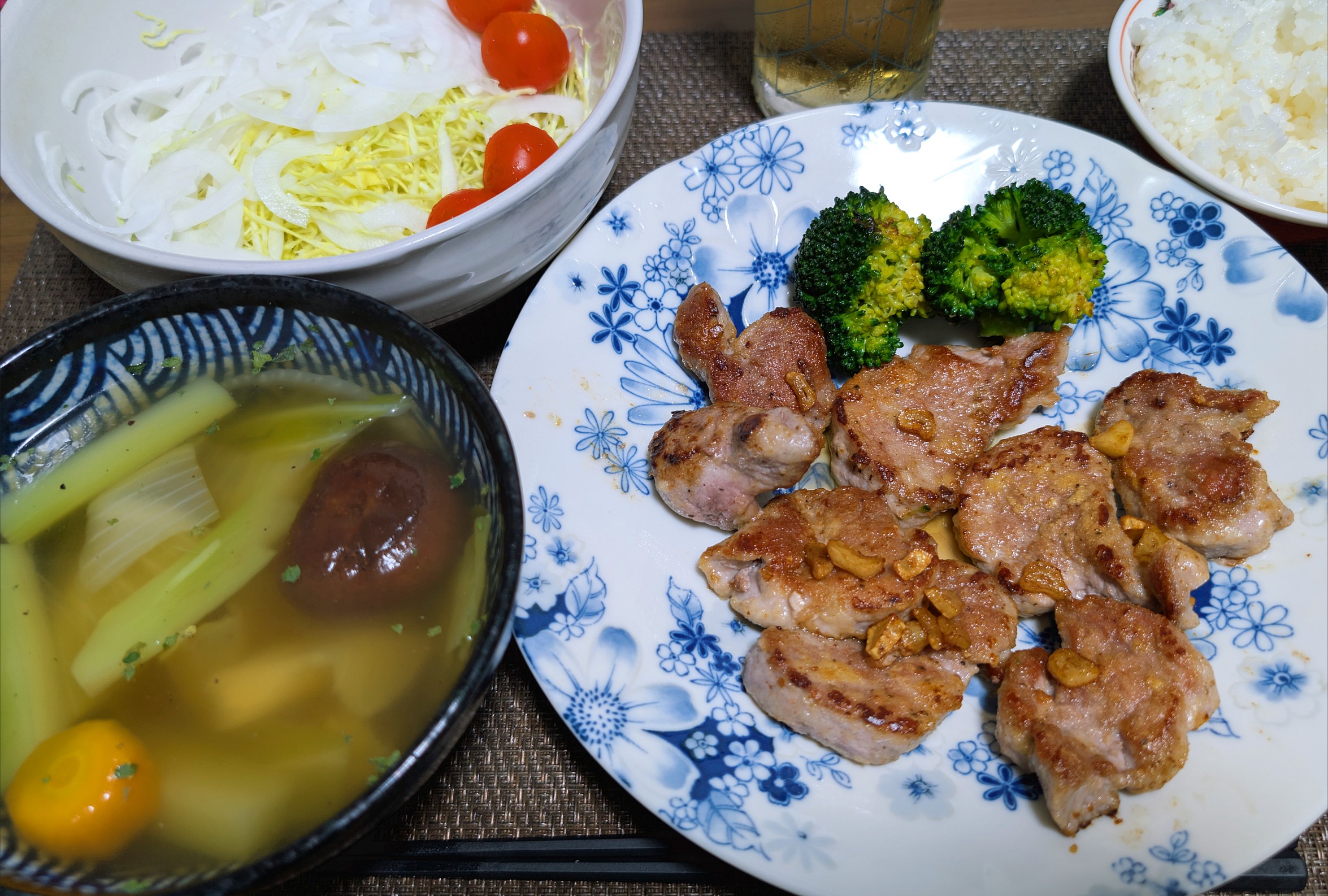 昼は、塩焼きそばバナナ 葱追加。うまい。 **** 夜は、冷しゃぶと豚玉スープ ... -