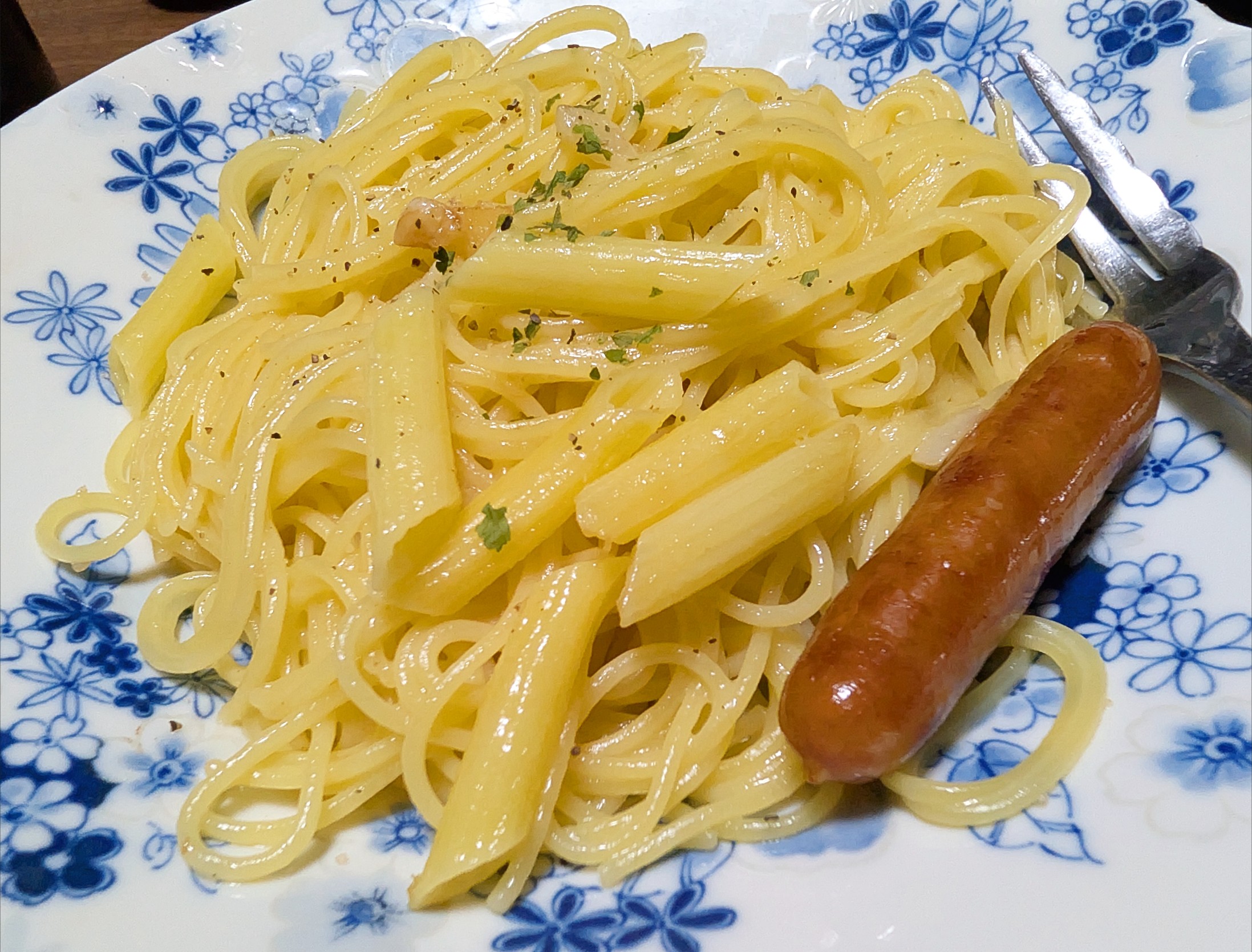 朝昼は、バナナフランクフルト うまい **** 夜は、レンチンたこ焼き ふつう *... -