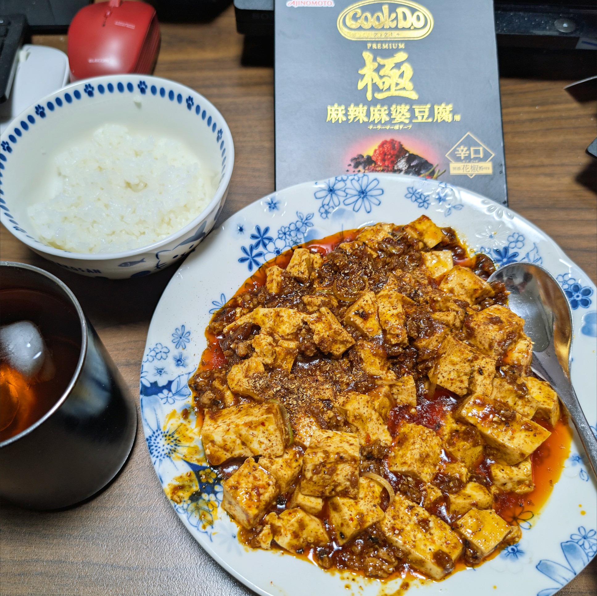 昼は、クックドゥの極麻婆豆腐 レシピ通り作ったけど、とにかく辛い!! 旨いより... -