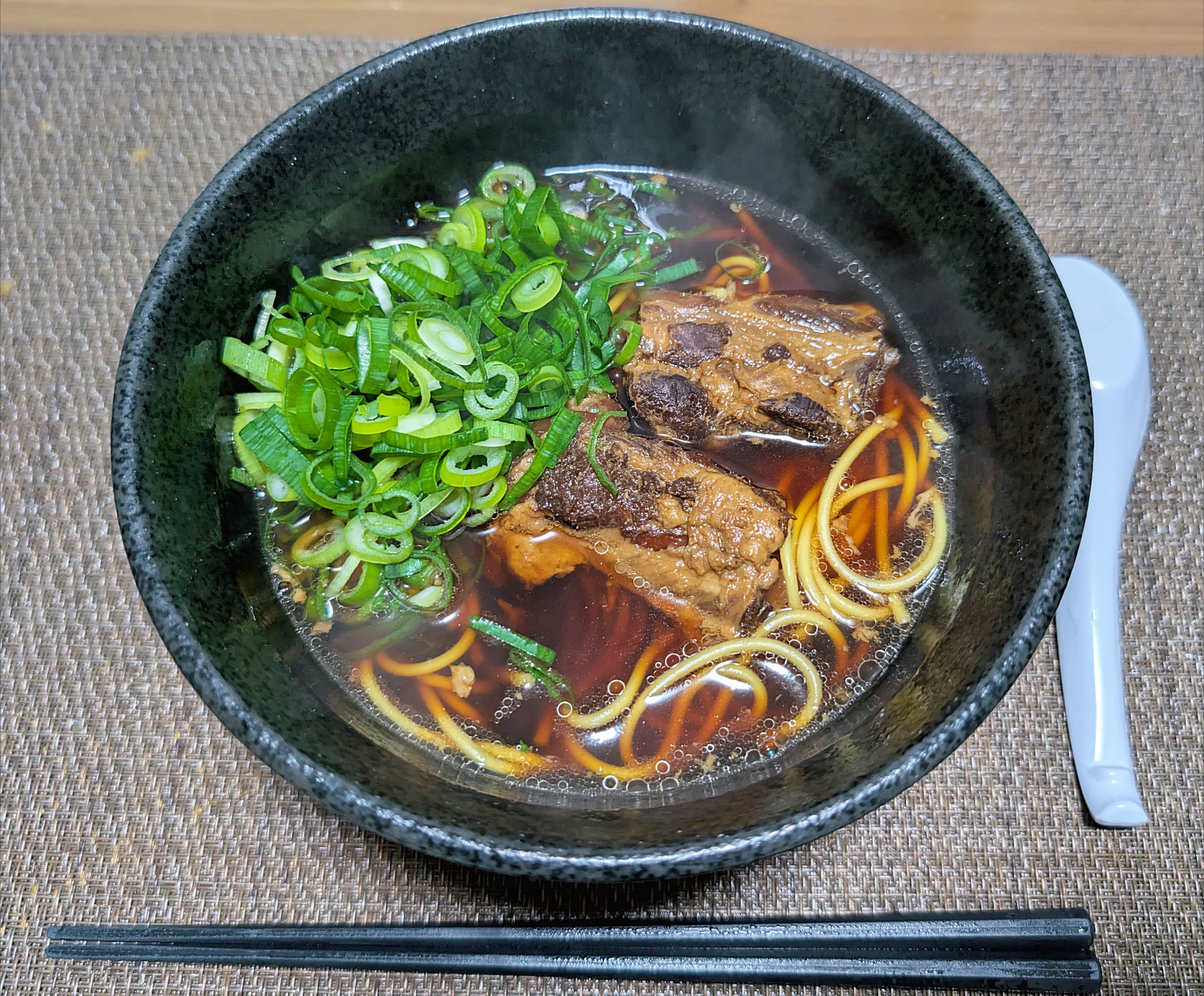 豚バラ軟骨を下茹後、炭酸水:300ml>濃口醤油:200ml>酒:50ml>みりん:50ml>ザラメ:大1/2>ニンニク:2欠で90分加圧。