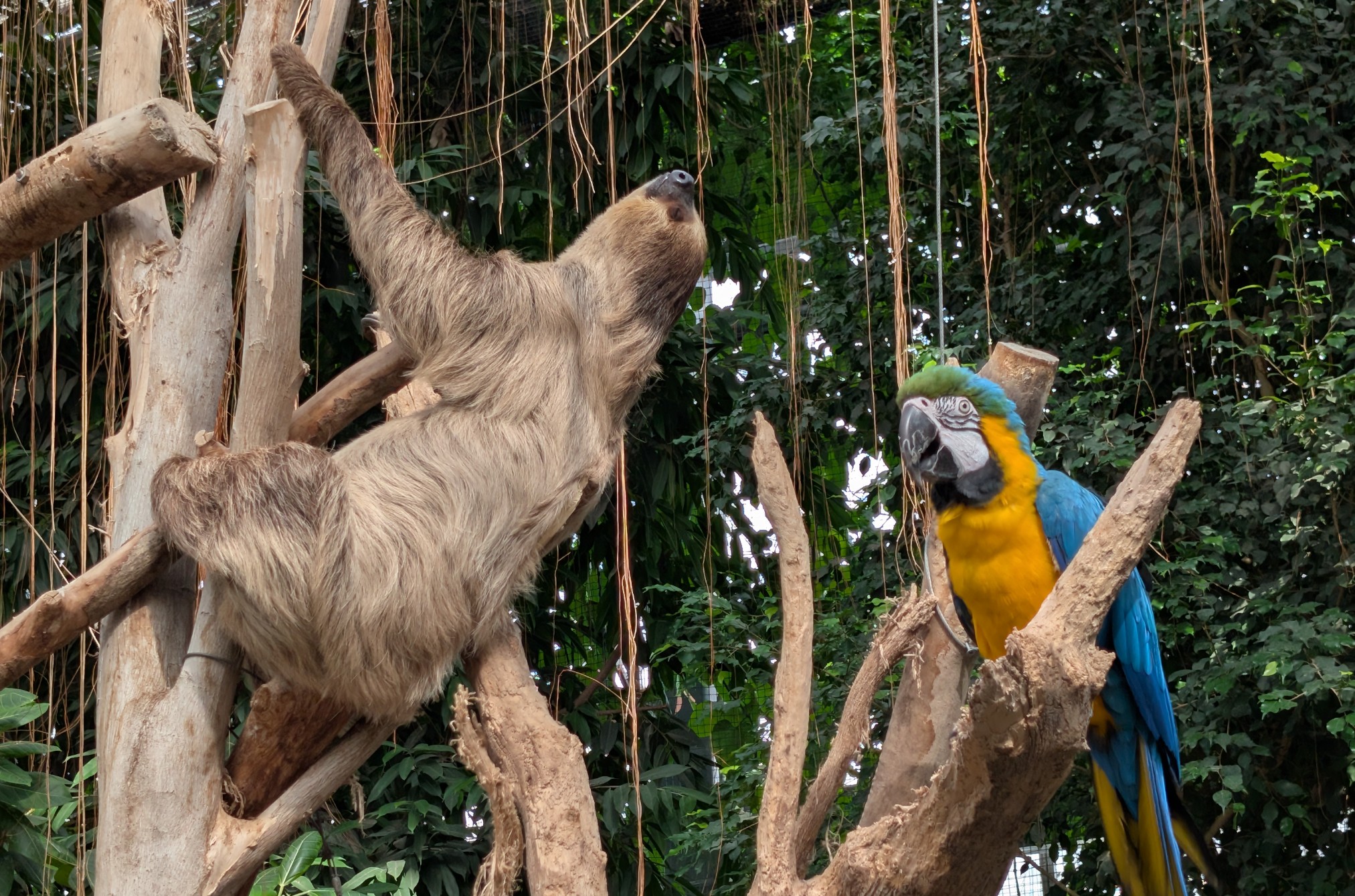 ナマケモノとルリコンゴウインコ。何か漫才してるみたいだった☺️