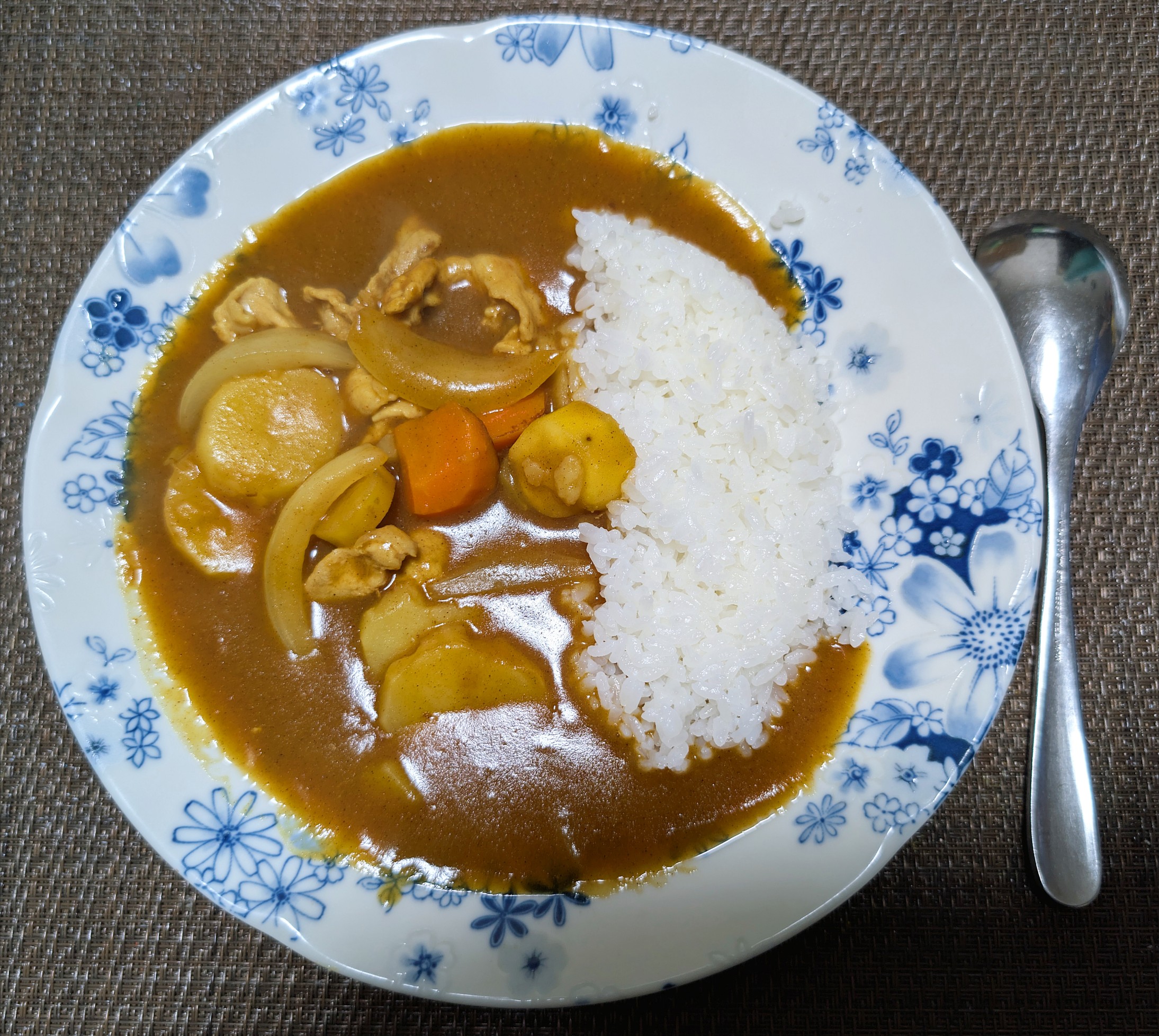 レンチンじゃがいも人参玉葱と豚バラを炒めてから、水入れて沸騰後、ルーを溶かして煮込む。