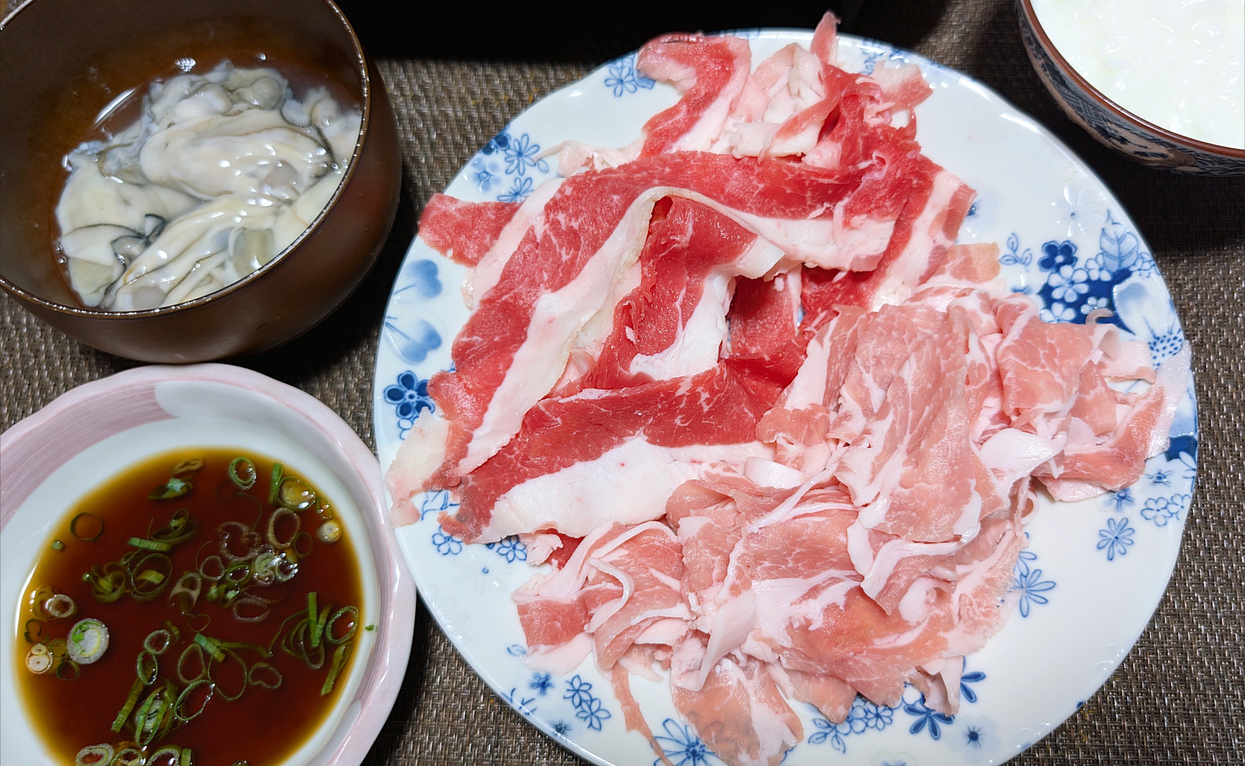 今夜は、牡蠣牛豚しゃぶしゃぶ鍋