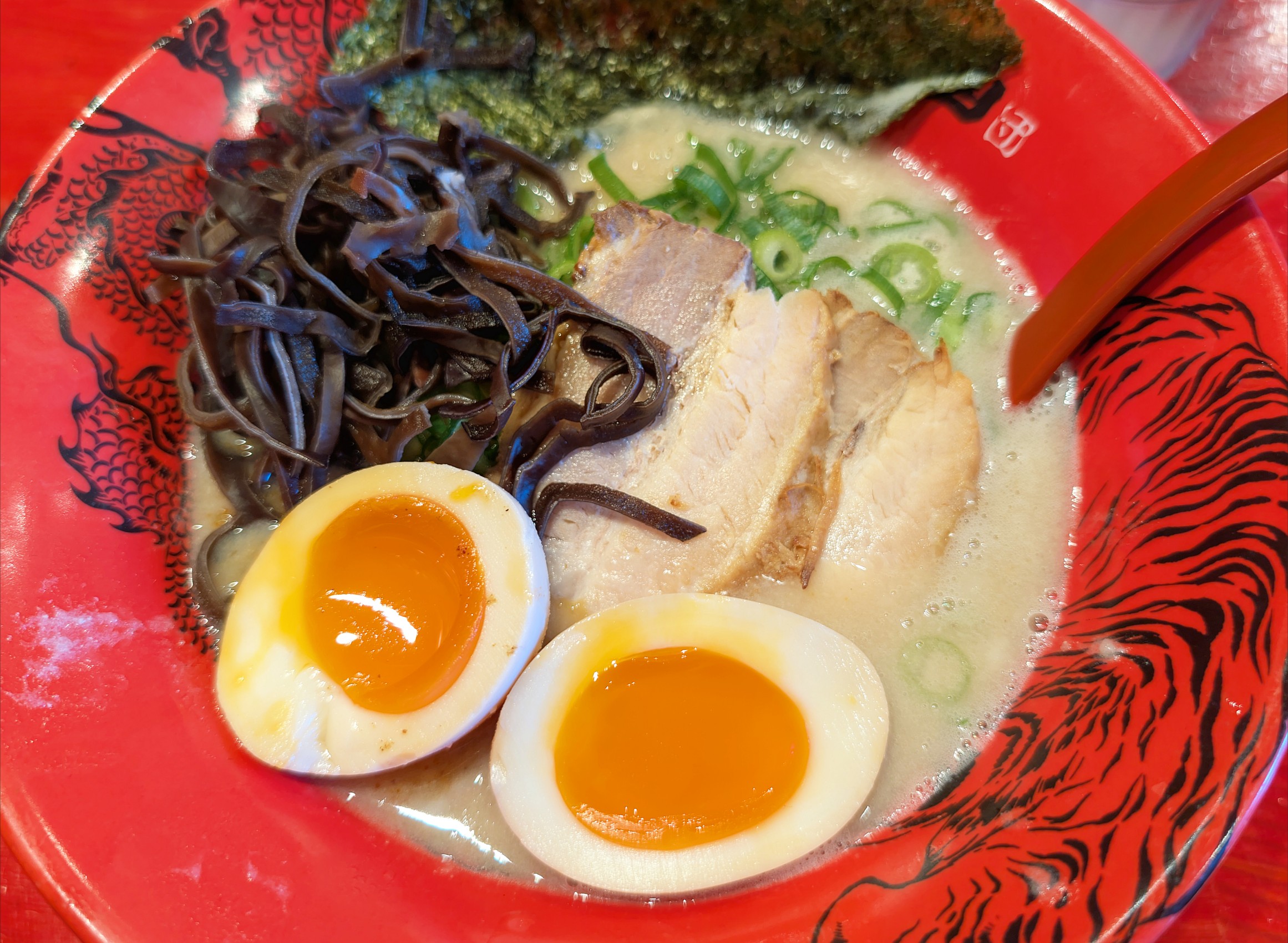 スープが下に沈殿してるので混ぜないと微妙。かなりのこってりだけど、味はピリ辛寄り。美味しかったけど、これ食べるなら天一を選ぶかな〜。