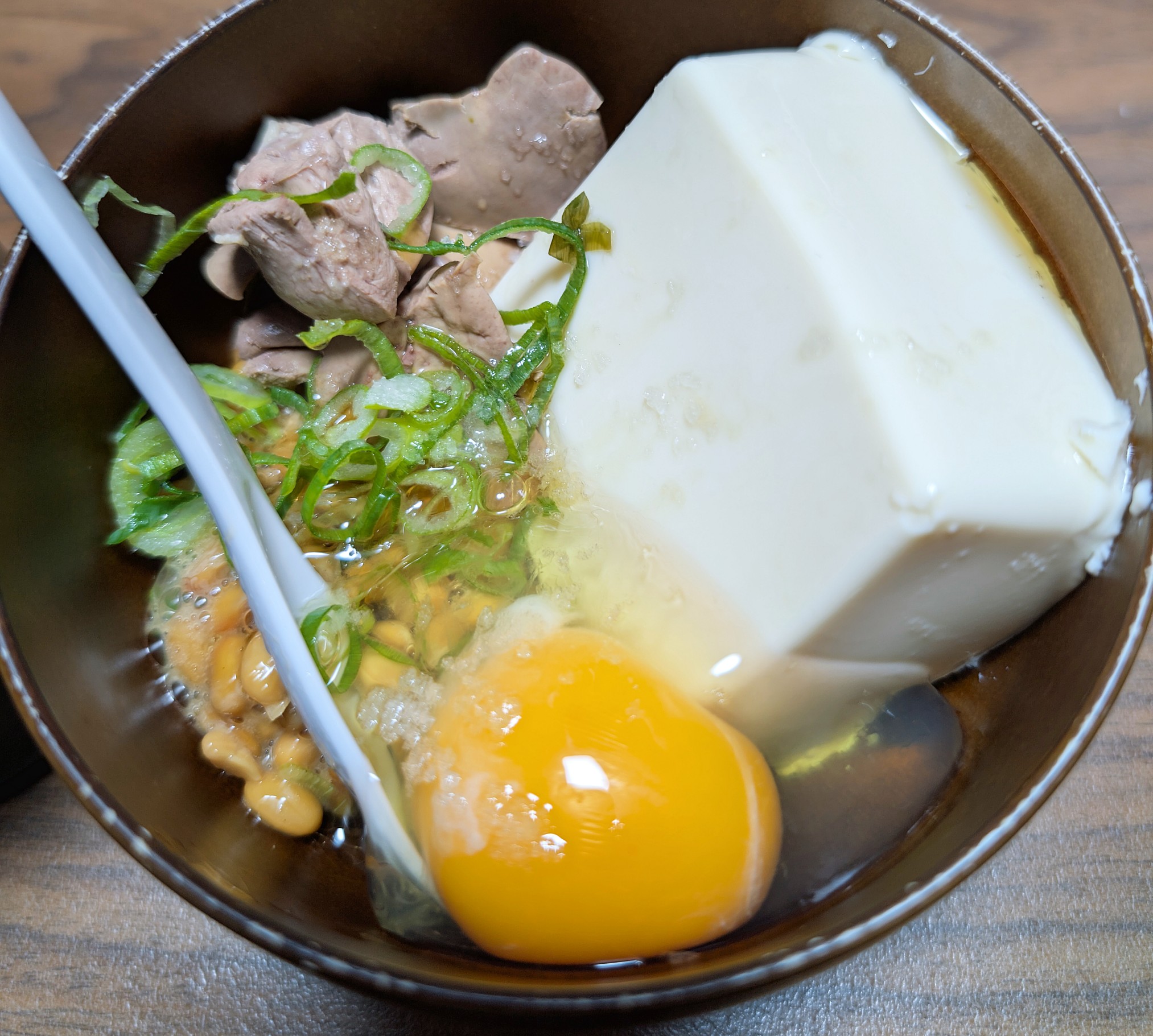 朝は、鶏肝卵納豆腐