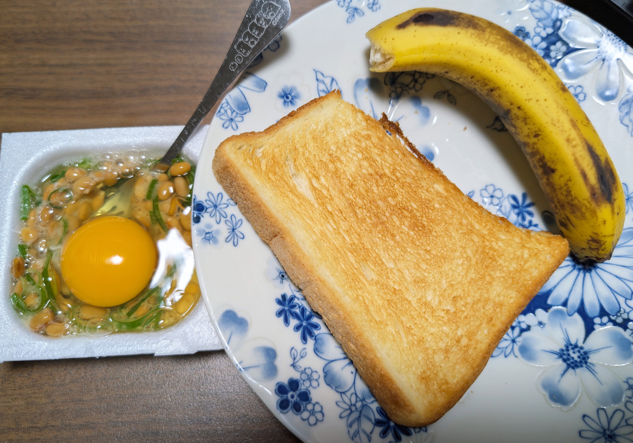 朝は、バナナ食パン卵納豆