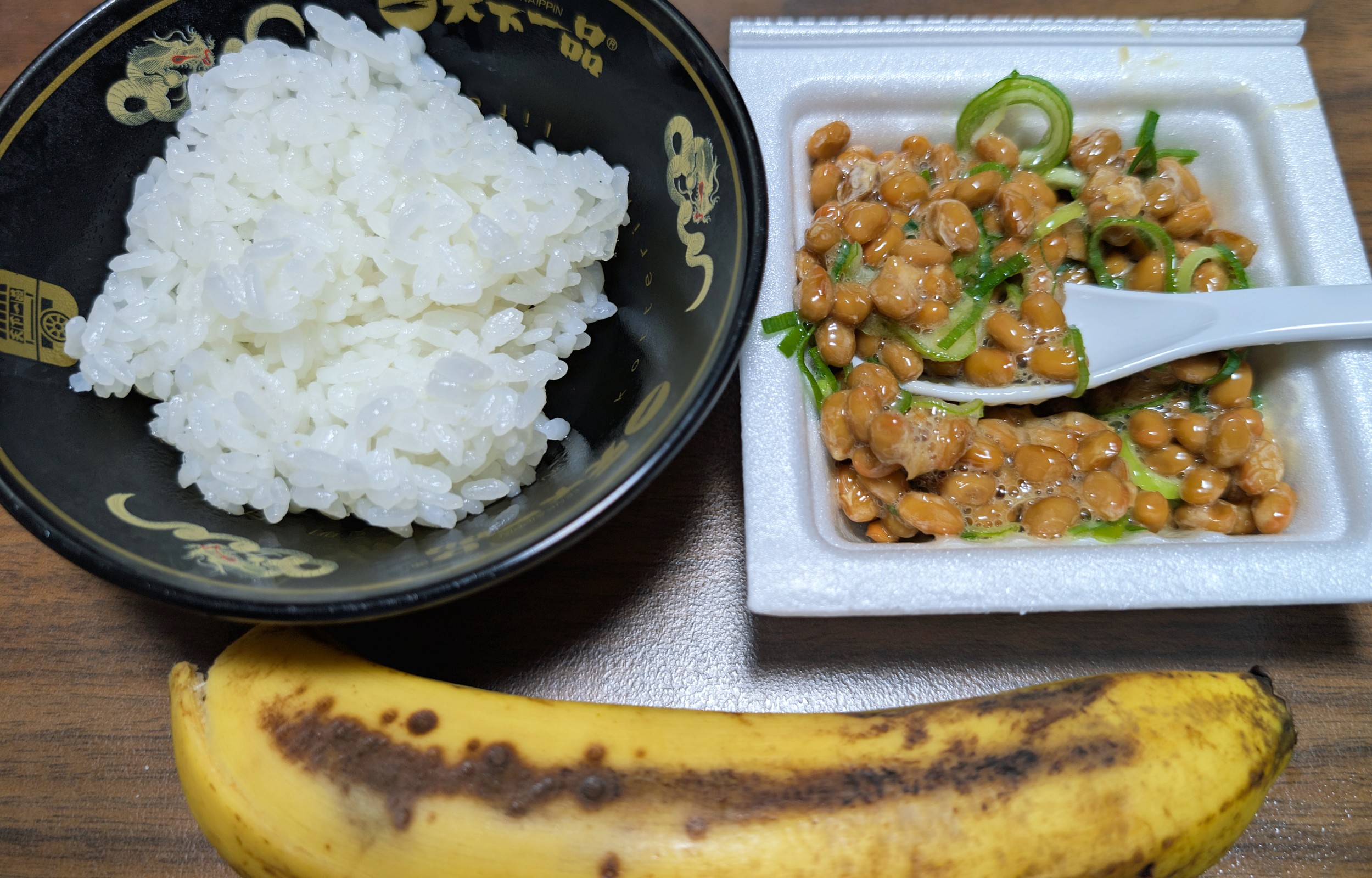 朝は、バナナ納豆ごはん