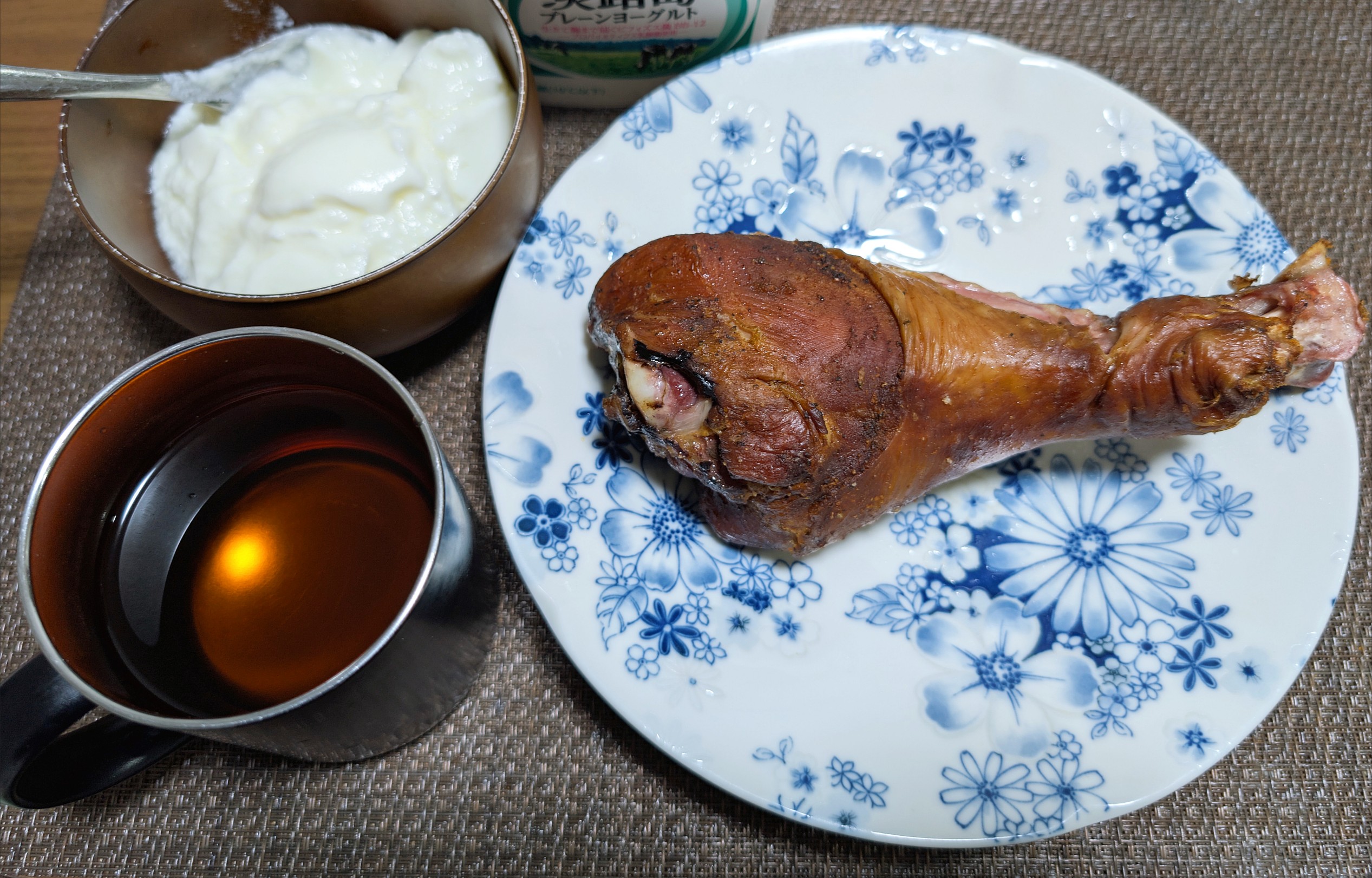 朝は、卵納豆とコンソメスープ うまい **** 昼は、ロピアのスモークチキン 昨... -