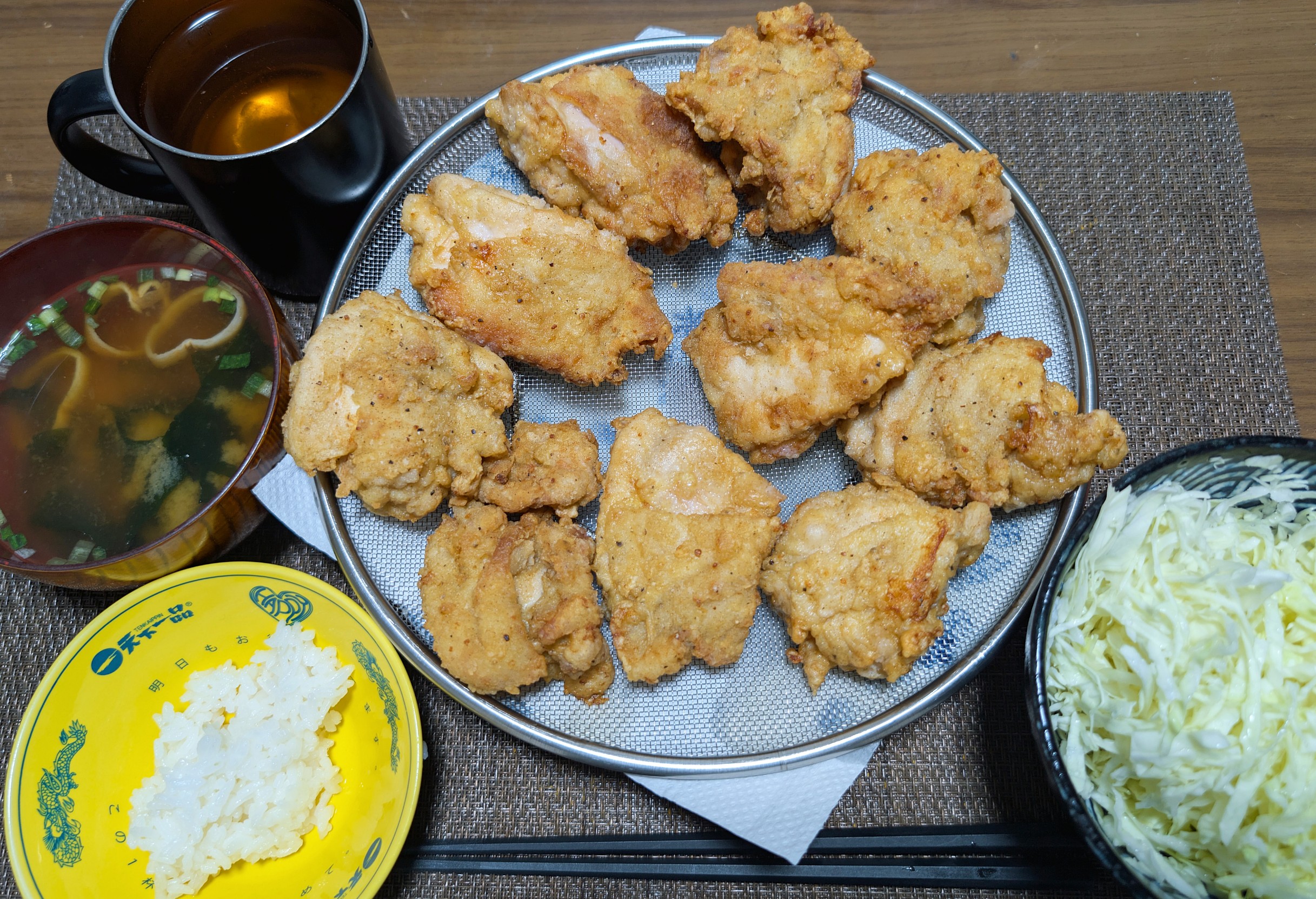 今夜は、豚バラの油淋鶏風・鰹のタタキ・卵とじキャベツスープ