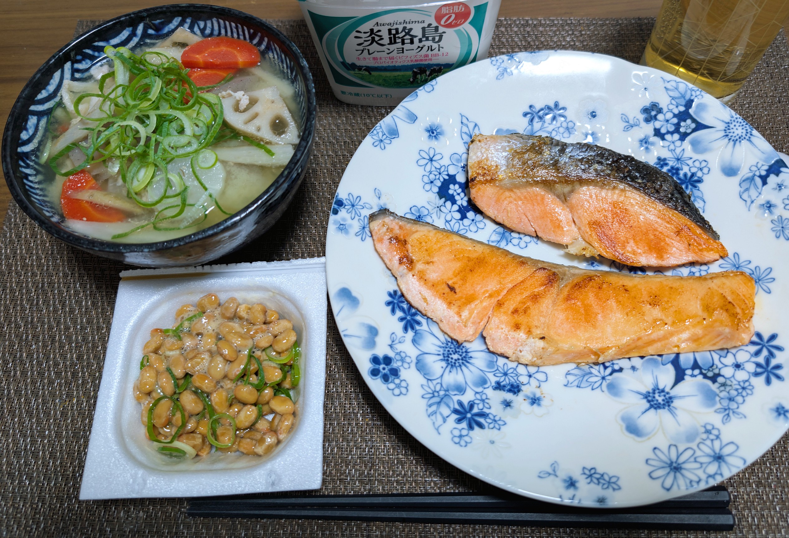 【豚汁と焼き塩鮭】【黒糖惣菜パン】【寝る時間がどんどん遅くなる日々】