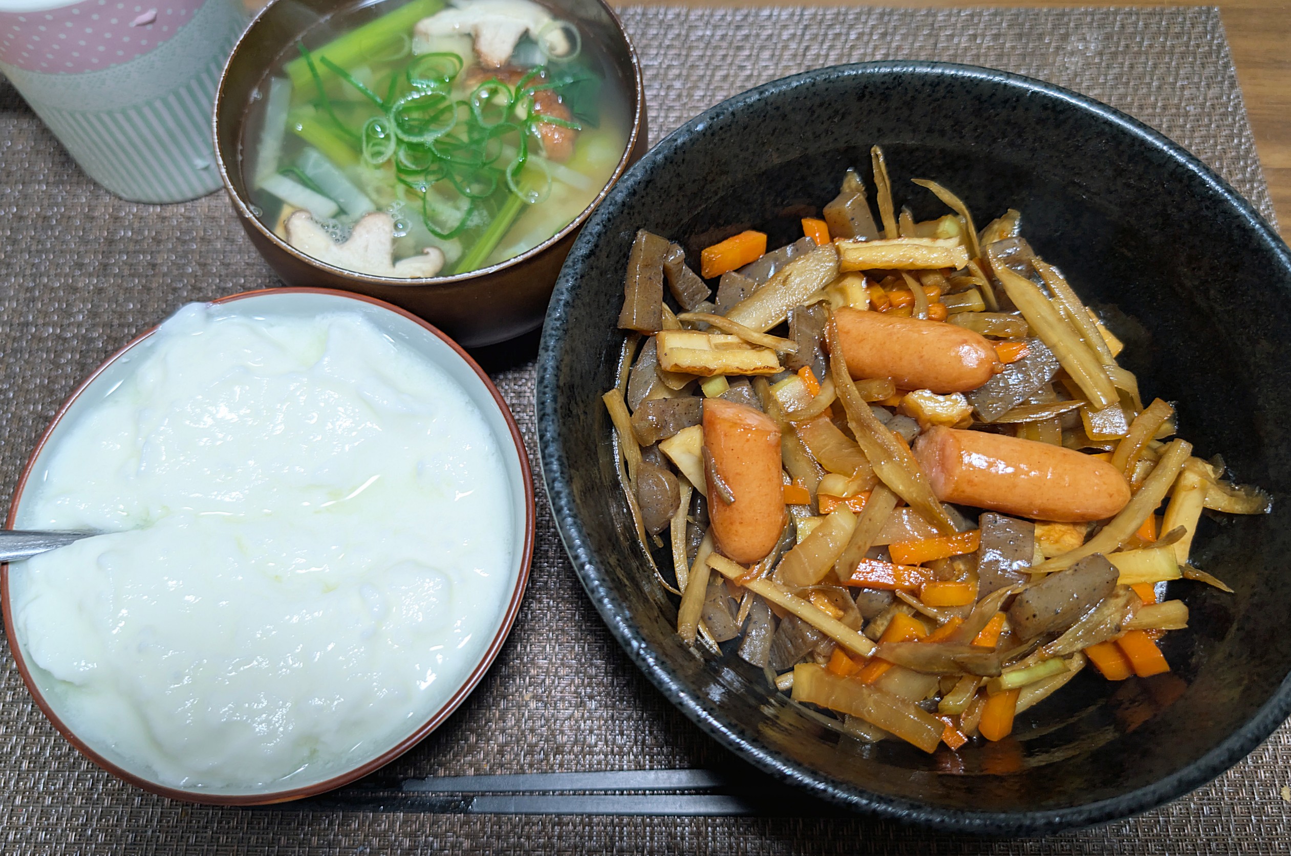 朝は、卵納豆とおせち残りラスト うま! **** 昼は、卵ウィンナーやきそば 妻... -