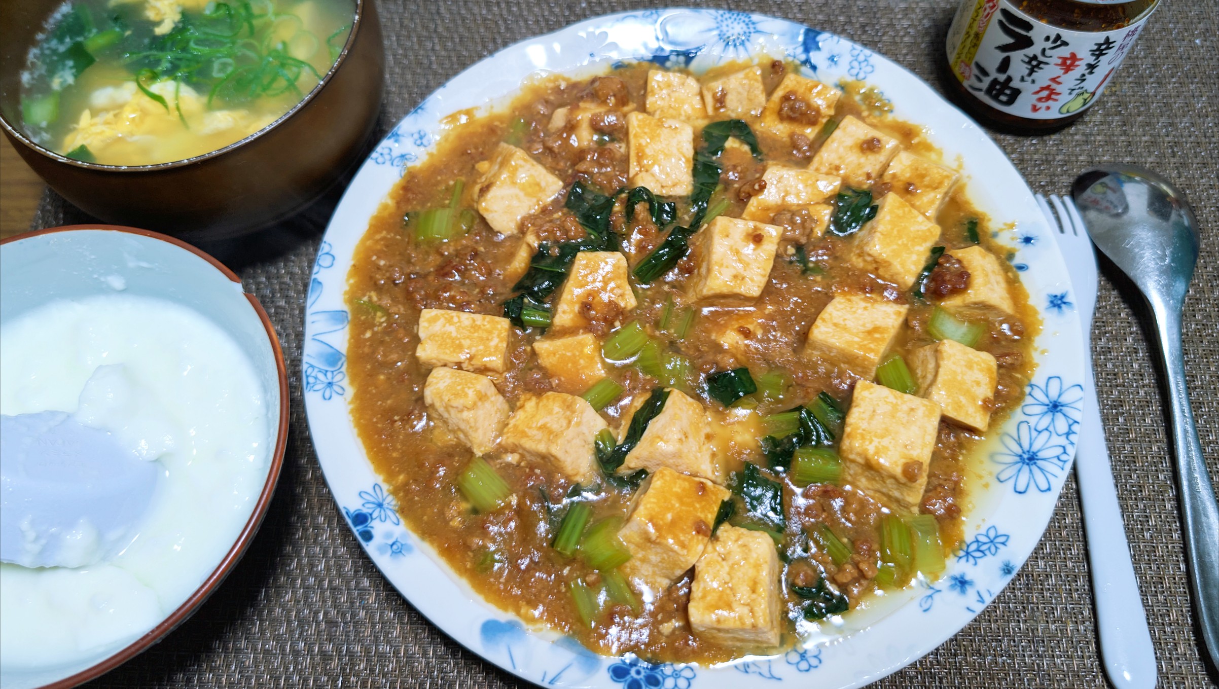 【麻婆豆腐と卵スープ】【家族とまったり】